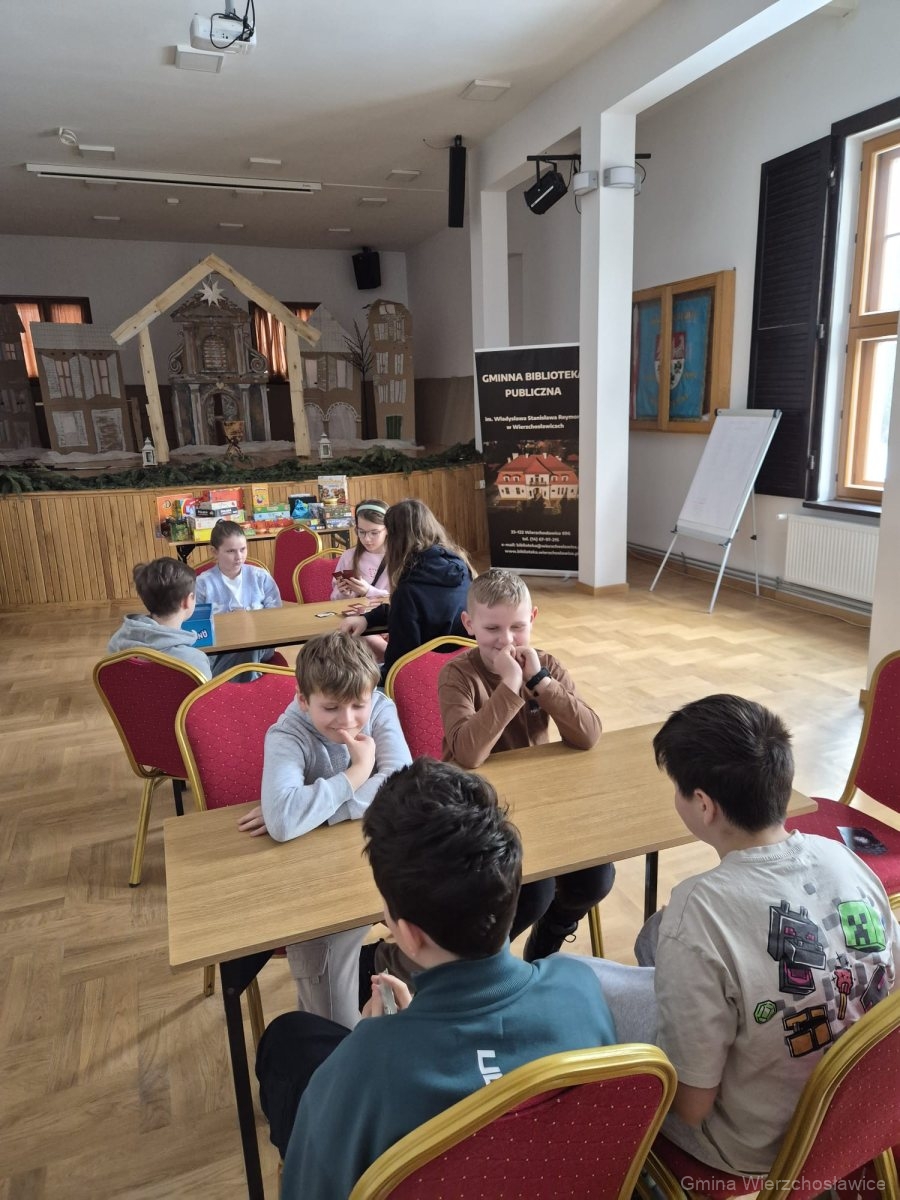 Za nami pierwszy tydzień ferii. Dzieciaki spragnione planszówek odwiedziły Gminną Bibliotekę Publiczną w Wierzchosławicach.