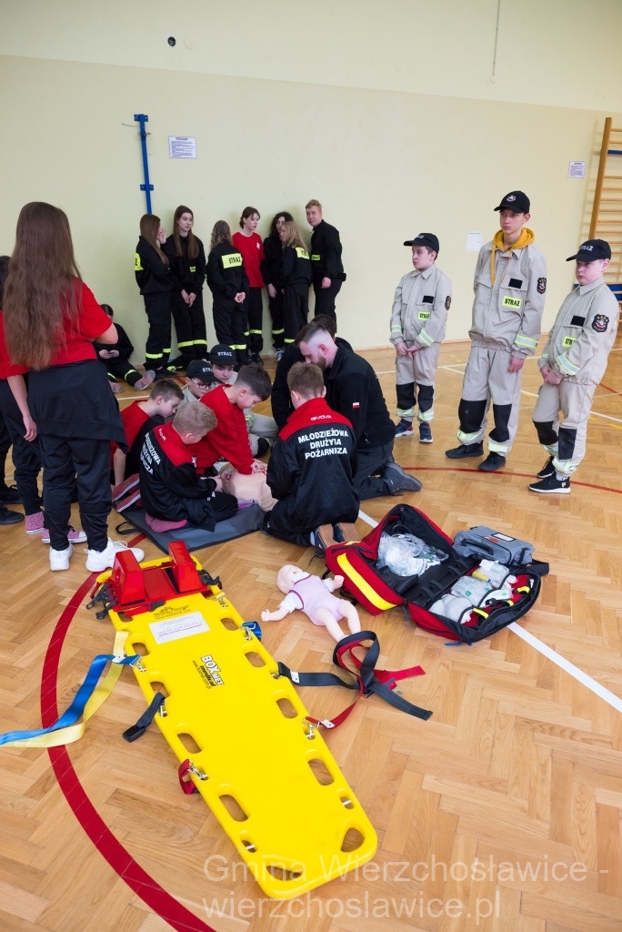 Podczas zawodów zostały również zorganizowane mini warsztaty z udzielania pierwszej pomocy przez uczestników wydarzenia. Młodzi strażacy mogli obserwować pokazy udzielania pomocy przez starszych kolegów z uprawnieniami KPP, a następnie osobiście wziąć udział i spróbować własnych sił w ćwiczeniach. Przeprowadzona również została prelekcja na temat profilaktyki uzależnień.