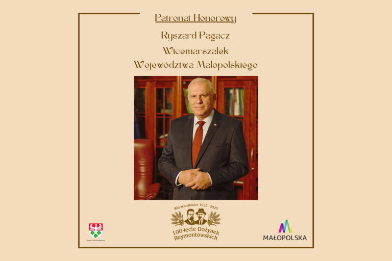 Ryszard Pagacz, wicemarszałek województwa małopolskiego jest honorowym patronem tegorocznego święta plonów: „100 – lecie Dożynek Reymontowskich 1925 – 2025”.