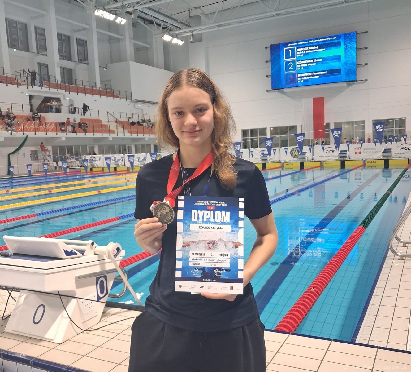 Złoty medal na dystansie sto metrów motylkiem wywalczyła Matylda Szwiec. Walka o najcenniejszy medal toczyła się do ostatnich metrów. To był bardzo emocjonujący pojedynek! Walkę o złoto Matyldy możecie zobaczyć na naszym Facebooku: