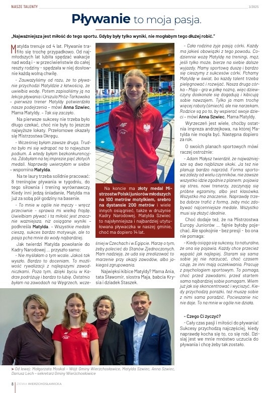 Więcej o pasji naszej 14 – letniej pływaczki, reprezentującej klub UKS Sokół – Mościce Tarnów, przeczytacie w najnowszym numerze Ziemi Wierzchosławickiej.
