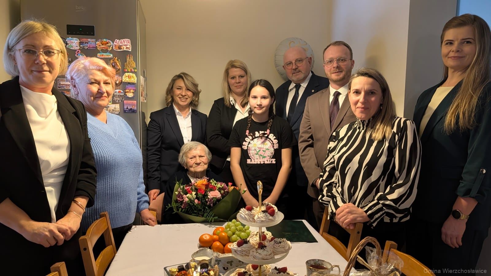 W uroczystych urodzinach uczestniczyła córka Krystyna, wnuczki Pani Tekli, prawnuczka, Małgorzata Moskal – Wójt Gminy Wierzchosławice, Jacek Hudyma – starosta powiatu tarnowskiego, Dawid Mocny – przewodniczący Rady Gminy Wierzchosławice, Anna Harbuzzastępca dyrektora ZUS Oddział Tarnów oraz Jadwiga Kumięga – kierownik Urzędu Stanu Cywilnego w Wierzchosławicach.