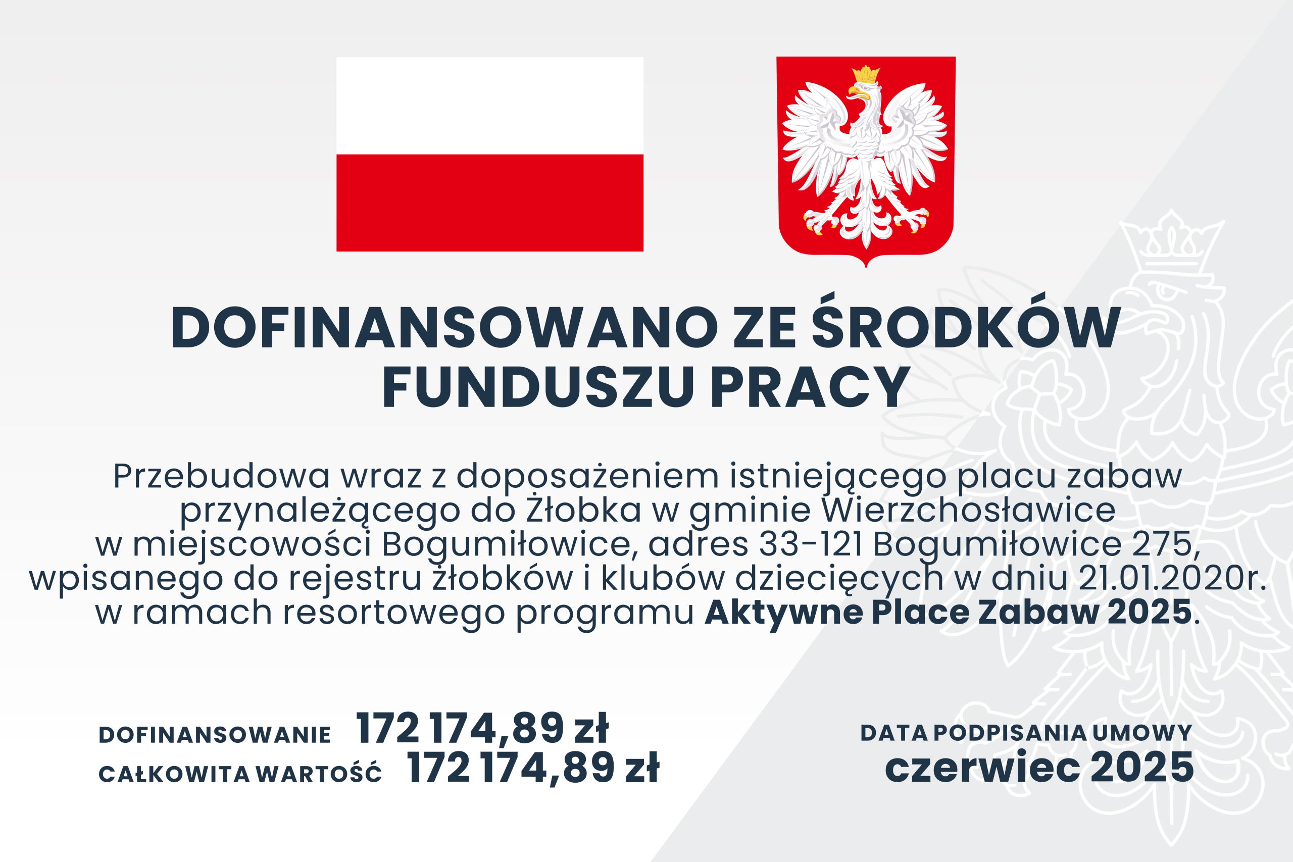 „Przebudowa wraz doposażeniem istniejącego placu zabaw przynależącego do żłobka w gminie Wierzchosławice w miejscowości Bogumiłowice”