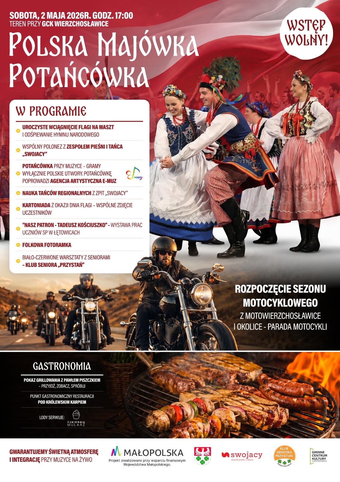 Startujemy 2 maja o godz. 17.00 przy Gminnym Centrum Kultury w Wierzchosławicach. Zapraszamy na wyjątkowe, pełne energii i tradycji wydarzenie!