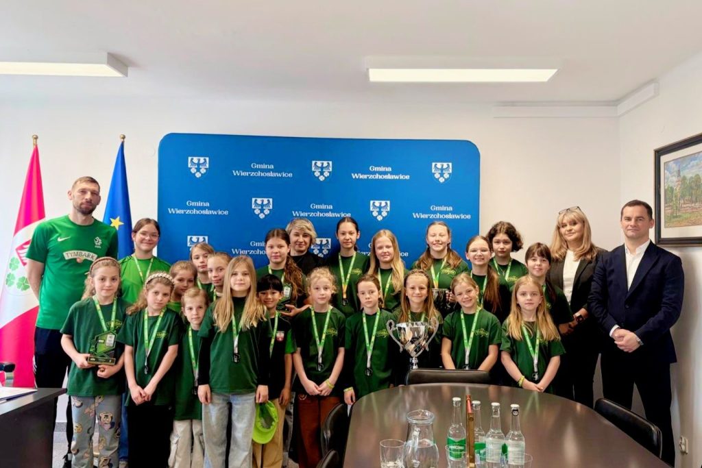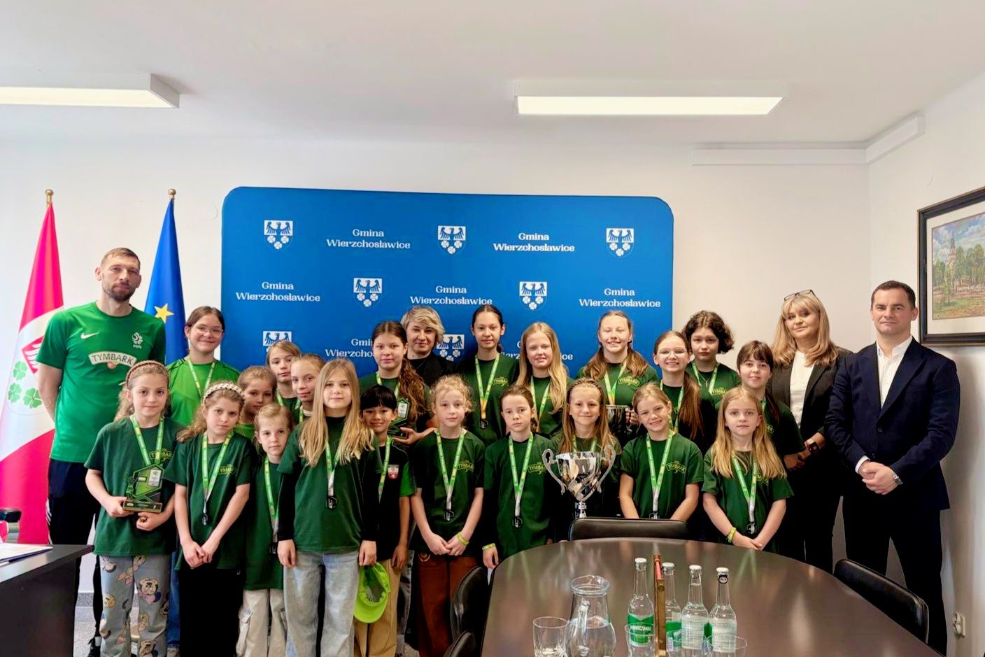 Dziewczęta pochwaliły się swoimi sukcesami podczas wizyty w Urzędzie Gminy.