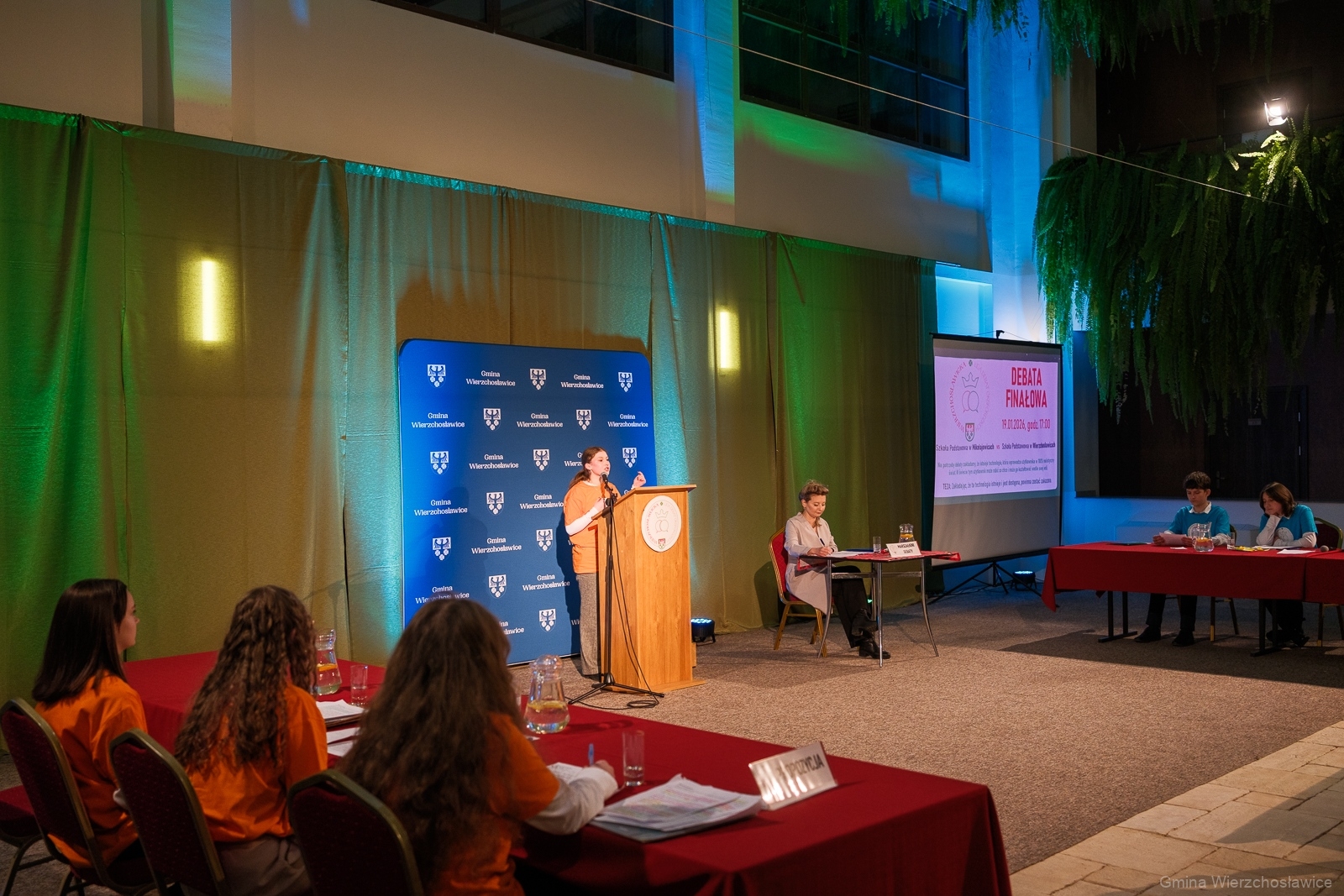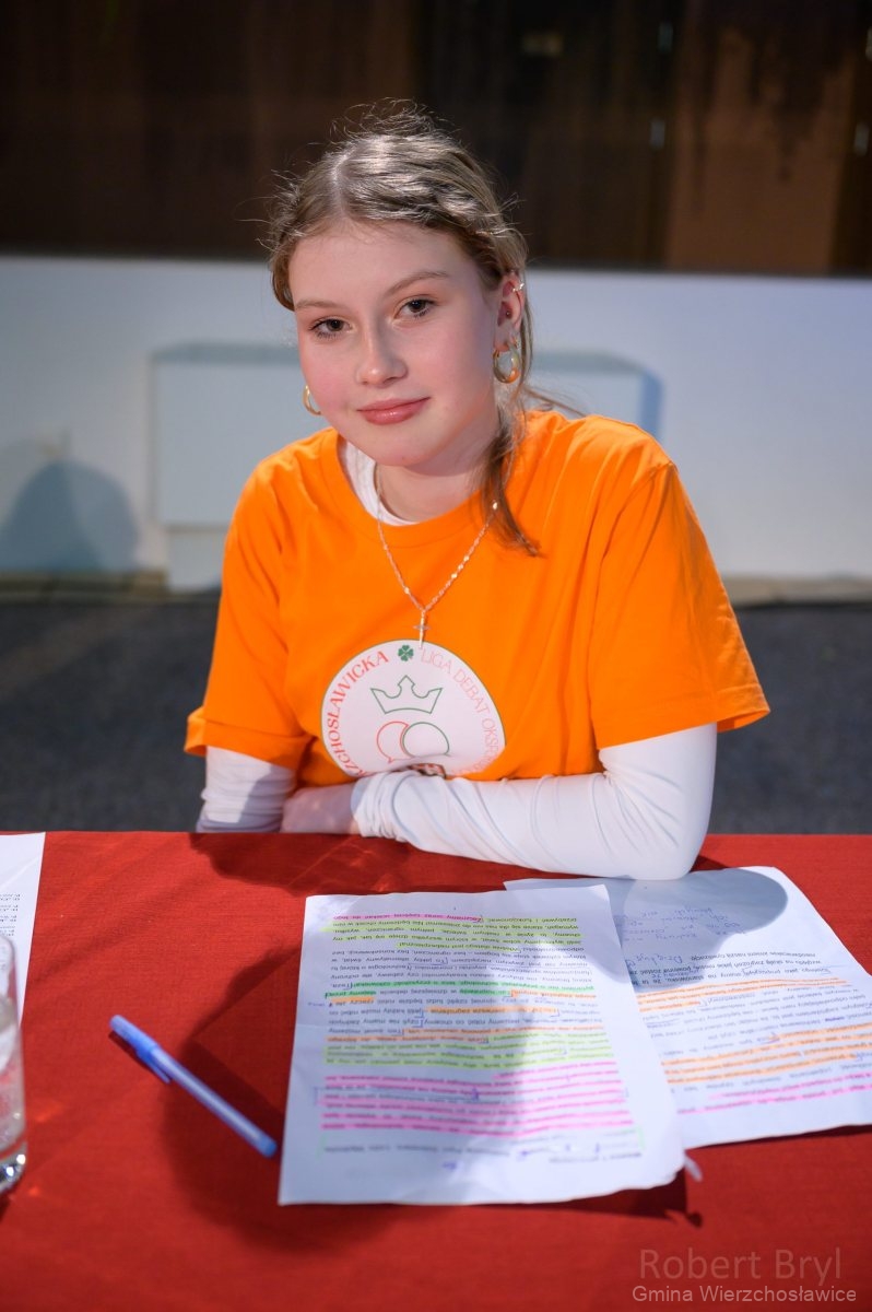 – Jestem z Was wszystkich bardzo dumna – nie tylko z uczniów, którzy dzisiaj znaleźli się w finale, ale ze wszystkich Was – powiedziała Małgorzata Moskal, Wójt Gminy Wierzchosławice.Przysłuchując się Waszym pojedynkom na przestrzeni ostatnich miesięcy, trudno nie zauważyć, jak bardzo rozwinęliście swoje umiejętności. Ten progres jest wręcz niesamowity i właśnie o to chodzi w tym projekcie. Jestem przekonana, że te umiejętności i to doświadczenie zdeterminuje Waszą edukację i Wasze życie. Zdeterminuje, bo zawsze znajdziecie argument, żeby obronić swoje zdanie, albo stanowisko i zawsze odezwiecie się wtedy, kiedy będzie to koniecznie. Być może kiedyś na samą myśl, mógł Was oblecieć strach. Dzisiaj wiem, że to się całkowicie zmieniło.