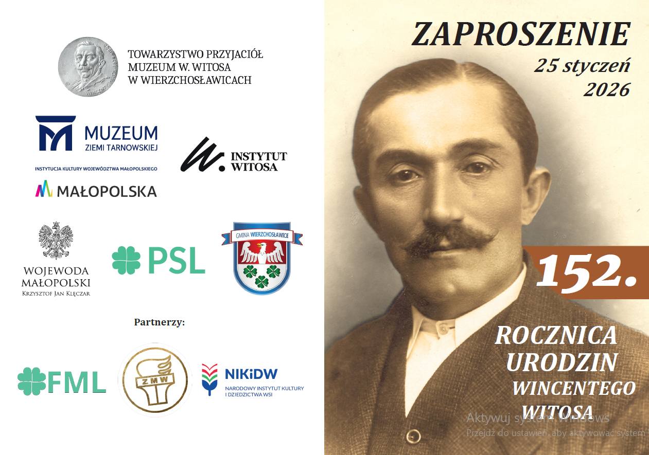 Serdecznie zapraszamy mieszkańców oraz gości na uroczystości upamiętniające 152. rocznicę urodzin Wincentego Witosa, które odbędą się 25 stycznia 2026 roku w Wierzchosławicach.