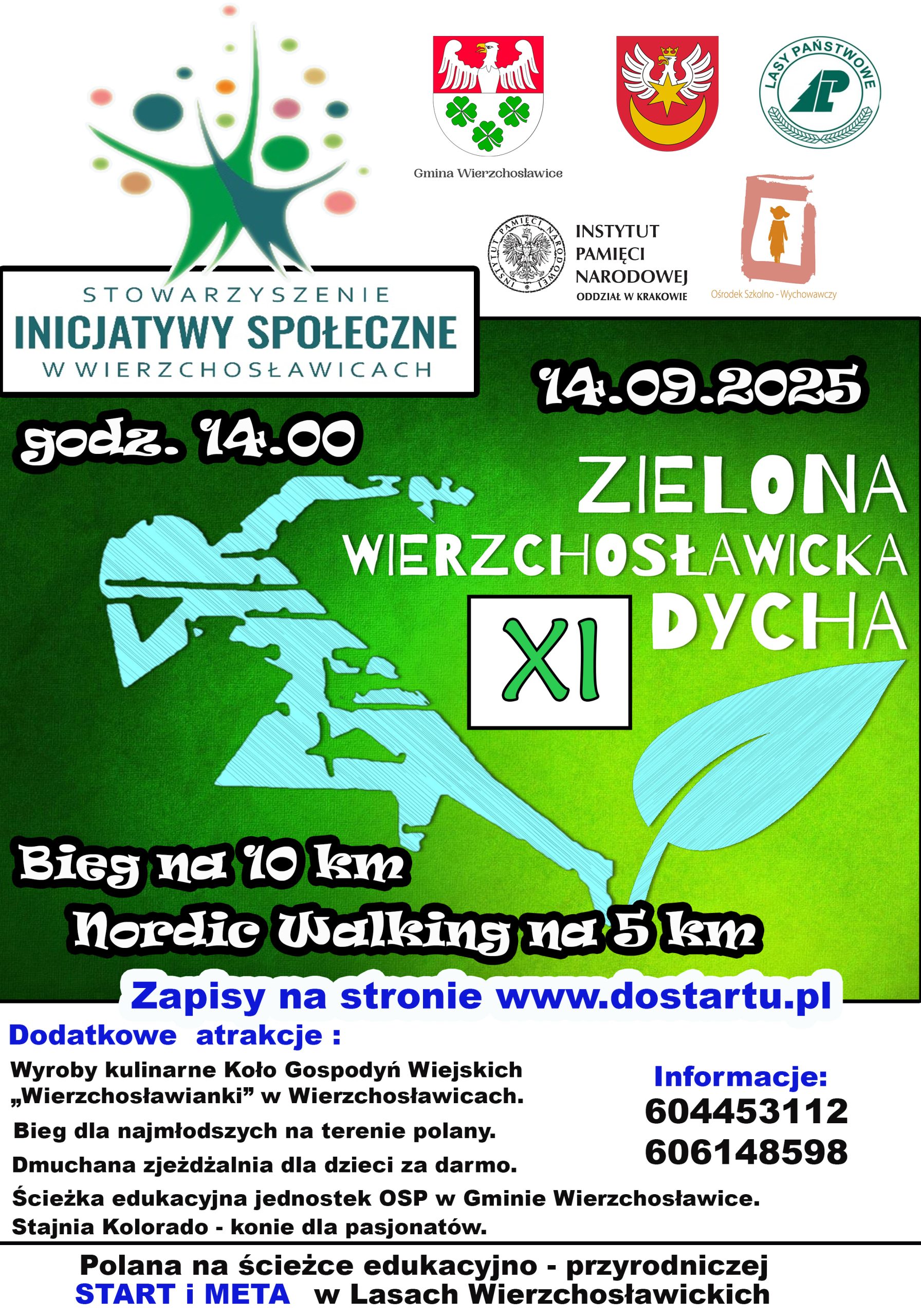 „Stowarzyszenie Inicjatywy Społeczne Wierzchosławice” po raz 11 organizuje Zieloną Wierzchosławicką Dychę, czyli bieg przełajowy na 10 km oraz Nordic Walking na 5 km. Bieg odbędzie się na polanie w lesie na Ścieżce Przyrodniczo-Leśnej – już w najbliższą niedzielę 14 września 2025 r.