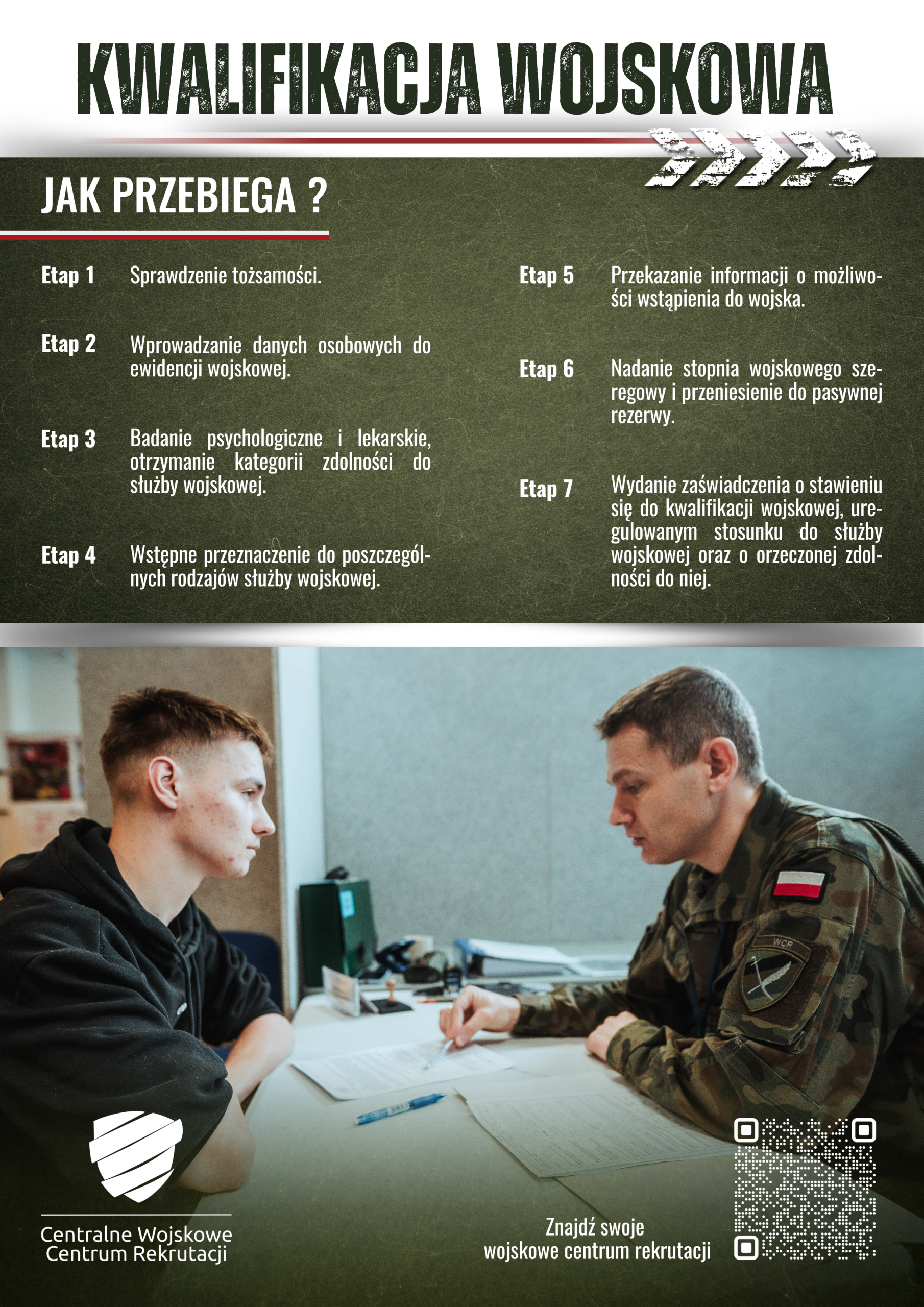 Dla wielu młodych ludzi kwalifikacja wojskowa jest pierwszym kontaktem z instytucjami wojskowymi. Na miejscu można uzyskać informacje dotyczące ochotniczych rodzajów służby wojskowej.